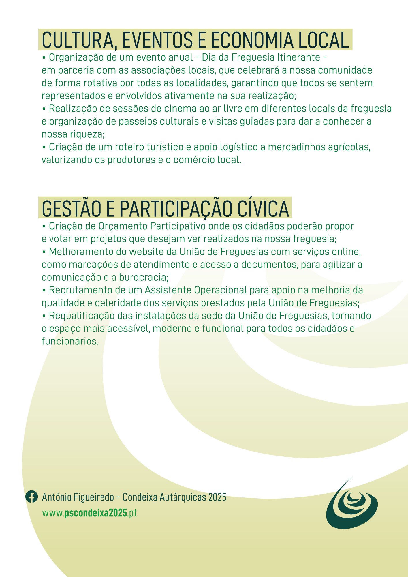 Candidata-se à União de Freguesias com o compromisso de servir a comunidade com proximidade, dedicação e vontade de fazer mais e melhor pela qualidade de vida dos fregueses.